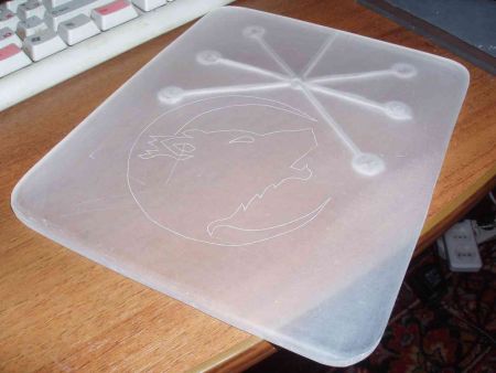 Светомузыкальный коврик для мышкиОчень красивый и необычный моддинг... коврика для мышки. Украсьте свой рабочий стол таким необычным ковром для мышки, который будет работать как светомузыка и радовать глаз своего хозяина и его гостей. Поверьте мне - такой коврик должен быть у каждого уважающего себя моддера. Как только у меня появился комп, у меня появилось огромное количество музыки, и после этого меня очень долго преследовала идея сделать светомузыку, но я никак не мог найти простенькую схему светомузыки. Но недавно гуляя по просторам всеми любимого Интернета я наткнулся на плагин для винампа который через LPT порт может управлять светодиодами, которые в свою очередь будут мигать в такт музыке. Как я говорил выше, светомузыка будет на шести светодиодах под управлением плагина для Winamp’а, и все это будет подключаться к LPT порту компьютера. Это мой второй светомузыкальный коврик, т.к. на первом была неудачная разводка проводов и там не было рисунка, уж больно милым мне волк показался =)… Но думаю у вас все получиться с первого раза. И так, что нам нужно: Внимание! Автор не несет никакой ответственности, если вы, что либо спалите, сломаете, сожжете или испортите. В этом будете виноваты только вы сами. Все схемы, файлы и инструкции полностью рабочие и неоднократно проверялись. Если вы будите следовать указаниям, то все получиться как надо. Итак, начнём с изготовления самого коврика: Сначала возьмем наш кусок оргстекла разметим форму будущего коврика… Я решил делать стандартный прямоугольный 17.5 x 21 см. коврик с закруглёнными краями. Маловат, конечно, но для меня в самый раз. Выпиливаем наш коврик по нарисованному контуру, для этого я использовал электролобзик. Но при наличии дремеля это делается проще и быстрее.