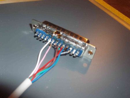 Теперь приступим к проводке. Берем LPT разъем (Был куплен шнур для принтера за пятьдесят рублей). От этого шнура оставляем только LPT разъем, т.к. кабель от него показался мне очень толстым (В нем 25 жил, а мы будем использовать только 7) отдельно я купил два метра восьми жильного кабеля – восемь рублей за метр.