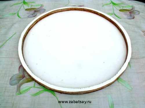 лобзиком. Под размер кольца вырезается круг из оргалита. Кольцо приклеивается к оргалиту. Важно хорошо все промазать