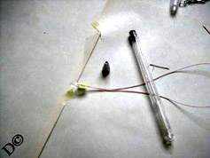 ![]() ![]() Теперь настала очередь и стержня, чтож он будет пропадать. Из него тоже сделаю псевдо неонку. Я взял 2 маленьких светодиода на 12 вольт (заодно и сопротивление не придется добавлять). Проделал все манипуляции, что и с предыдущими светодиодами.