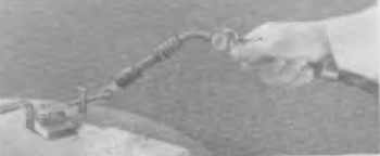 Нагрев пламенем естественного газа используют для плавки небольшого количества металла. В плавильный пистолет подаются бытовой газ и воздух в определенной пропорции, и эта воздушно-газовая смесь поджигается у выходного отверстия пистолета. Если раньше сжатый воздух получали с помощью мехов, то в настоящее время в современной ювелирной мастерской имеются электрические дутьевые вентиляторы для подачи воздуха или кислорода. Плавка плавильным пистолетом требует определенных навыков: необходимо регулировать подачу газа и воздуха. Лучше всего для плавки подходит сильное шумящее пламя с вытянутой восстановительной зоной. При большом давлении воздуха образуется окислительное пламя с небольшой температурой и, кроме того, в расплав нагнетается холодный воздух, вследствие чего на поверхности расплава образуется затвердевшая пленка. Если давление и подача воздуха небольшие, то газ сгорает не полностью, и пламя имеет низкую температуру (рис 58). Для плавки металла весом до 50 г достаточно плавильной чаши, которая легко нагревается открытым пламенем газового пистолета. Преимущество этого метода плавки включается в простоте и дешевизне
