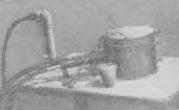 ![]() Рис. 58. Расплавление небольшого количества металла в плавильной чаше пламенем ацетилена Металл в количестве, превышающем 150 г, целесообразно плавить в специальной плавильной установке (рис. 59). Эта установка представляет собой шамотный плавильный муфель в виде горшка, который нагревается через боковое отверстие с помощью ![]() Рис 59. Плавильный горшок для плавки металлов с присоединенным плавильным пистолем