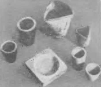 ![]() Гессенские глиняные тигли (рис. 61) изготовлены из жирной глины, не содержащей железа и извести. Благодаря примеси кварцевого песка и шамотной муки они не трескаются и не усыхают. Они дешевле и прочнее графитовых, но срок их эксплуатации меньше. Перед эксплуатацией их также прокаливают и глазируют бурой, прилипшие остатки металла не выбивают, а выплавляют вместе с бурой.