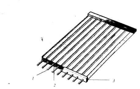 1 — стальная проволока; 2 — опилки алюминия; 3 — затравка Основу самодельного "электрода" представляет отрезок проволоки из обычной углеродистой стали самого низкого качества (содержание углерода менее 0,22%). Диаметр проволоки (2-5 мм) зависит от толщины свариваемых деталей. Сам термит состоит из 23% опилок алюминия (силумин не подходит!) и 77% железной окалины, размеры частиц которой не должны превышать 0,5 мм. Алюминиевые пилки вполне заменяет алюминиевая пудра для получения краски "серебрянки". Окалину и опилки (пудру) связывают клеем (БФ-2, "Момент"). С одной стороны термитного карандаша наносится затравка, выполняющая роль серы на обычных спичках. Она состоит из 2 частей бертолетовой соли (КСlО3) и 1 части мелких алюминиевых опилок (части берут по массе). Связующее для бертолетовой соли и алюминиевых опилок то же, что и для термита электрода. Для формирования термитного карандаша всё три компонента — окалина, опилки и клей — хорошо перемешивают в стеклянной или глиняной посуде, после чего полученную сметанобразную массу равномерно наносят на подготовленный отрезок проволоки обыкновенной палочкой или же вращают проволоку над посудой, понемногу "накручивая" на нее термитный состав. Нетрудно сделать и нехитрое приспособление-форму для получения сразу десятка "электродов". На деревянное основание прибивают подходящую алюминиевую гофрированную полоску. К торцам формы плотно прижимают две алюминиевые "стенки", в которых предусмотрены отверстия для установки проволочных стержней термитных карандашей. Приспособление-форма для изготовления электродов