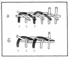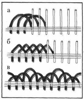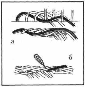внутрь корзинки (рис. 24,6). Таким способом получают ободок или косичку узкую.