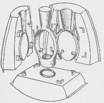 Рис. 1. Раскрытая известкован форма из трех частей с готовой отливкой