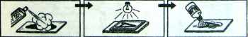 При освещении лампой, те места, которые были открыты для света - разрушаются, но смыть их можно только щелочью / едкий натр; едкое кали; средство для чистки канализации "крот"/.