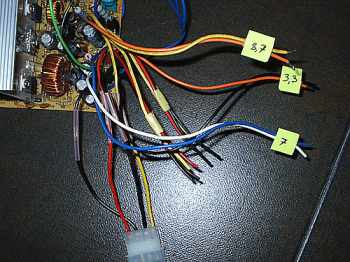 После того как приклеим, выдавливаем сетку пальцем наружу. Это покажет давление, которое было при взрыве. Начинаем электрическую часть… Для начала разбираемся в проводах. Отрезаем весь пучок короче, берём мультиметр и начинаем искать интересующие нас провода. Нам нужны: Жёлтый и оранжевый 8,7V Белый и синий 7V Чёрный и оранжевый 3,3V Эти разъемы теперь можно использовать для LEDов без допайки резисторов. Остальные просто выпаиваем, они нам не понадобятся, кроме зелёного, его оставьте! Начинаем пайку. Два верхних молекса подпаиваем как обычно (два черных на Ground, красный +5, жёлтый +12). Сделали? Тогда дальше, из следующих молексов вытаскиваем по два штырька, (какие хотите) и подпаиваем к тем местам, которые мы пометили так: