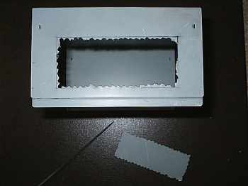 Доводим натфилем, и отгибаем плоскогубцами наружу (градусов на 30). Должно получиться, что-то вроде взрыва, который произошёл внутри коробки, и разорвал стенку! Хорошо обработайте края, мелким надфилем, а затем наждачкой. Теперь отпиливаем такой же кусок плекса (у меня был 4 мм) можно толще: