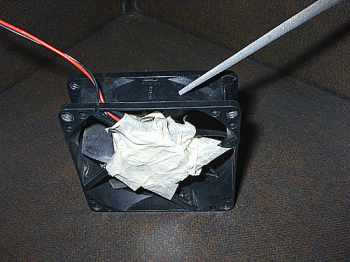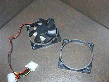 Теперь берём кулер, заклеиваем скотчем зазор между основанием и моторчиком, чтобы туда не попали стружки. Мы будем его пилить, точнее только корпус, по линии: