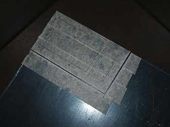 Следующая ступень, отпиливаем кусок от листа алюминия, по размерам стороны, где вентилятор. Обклеиваем малярным скотчем, и размечаем где у нас, будут врезаться молексы. Проверьте, чтобы они ни во что не упирались. Сверлим отверстия и доводим надфилем: