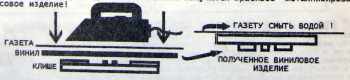 Берется музыкальная виниловая пластинка для проигрывателя 70-90 годов (продаестся на любом "блошином" рынке) и нарезается на небольшие куски резаком для картона. Затем она ломается по линии надрезки. После этого, на стол надо положить резиновую; фотополимерную; картонную или из оргстекла форму, а на нее сверху кладется лист винила. Винил сверху накрывается листком газеты и сверху на это все ставится горячий утюг /110-130 градусов/ на 1,5 минуты. По окончании этого времени, уже на подразмягченный под газетой винил производится сильное дожатие утюгом на 10 секунд, затем утюг быстро снимается, а на его место быстро ставится плоский холодный груз /5-10 кг/ на 1 минуту, после остывания винил отделяется от формы, так из винила изготавливаются пластмассовые значки, амулеты, брелоки, фигурные накладки, рамки, медали и другое !