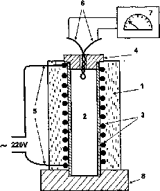 Следующий этап постройки печи, будет, пожалуй, самым трудным — это сооружение датчика температуры (см. рис. 1). Дело в том, что широко применяемые в технике готовые термопары содержат в себе драгоценные металлы, и поэтому дорогостоящи. Евгений Ярославович предлагает схему изготовления самодельной термопары, изготовляемой из более дешевых материалов — хромелевой и алюмелевой проволок. Правда температурный порог работы такой термопары — немногим больше тысячи градусов, но для плавки золота и серебра такой температуры вполне достаточно. Два куска упомянутых проволок скручиваются друг с другом, длина скрутки должна быть 5-10 мм. Для спайки проводов автор разработки предлагает довольно необычный метод: к одному свободному концу скрутки подсоединяется провод, идущий от латра (регулируемого трансформатора), регулятор латра ставится на нулевое деление, на какую-либо диэлектрическую поверхность насыпается смесь графитового порошка и буры в пропорции 5:1. Второй провод от латра подносится к месту пайки, как показано на рисунке. Далее, по мнению автора, наступает самый "аккуратный" момент: на несколько секунд подается ток. Сигналом к окончанию операции пайки служит появление на месте контакта шарика расплава, состоящего из двух металлов. Рабочая часть термопары готова, остается вмонтировать ее в крышку печи, подсоединить к милливольтметру, рассчитанному на пятьсот милливольт и заново отградуировать шкалу, пользуясь, в качестве ориентира, точками плавления различных чистых металлов. Эта операция проводится уже в рабочей печи.